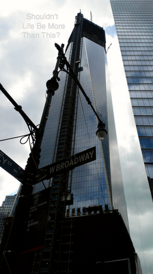 27. On the road - I could see the new World Trade Center building even when I flew over the city of New York. Last time I was in town, it was nothing but a whole. Now it is a really large building. I think it is now the tallest building in NYC. When it is complete, it's glass walls will be seen all throughout the city.